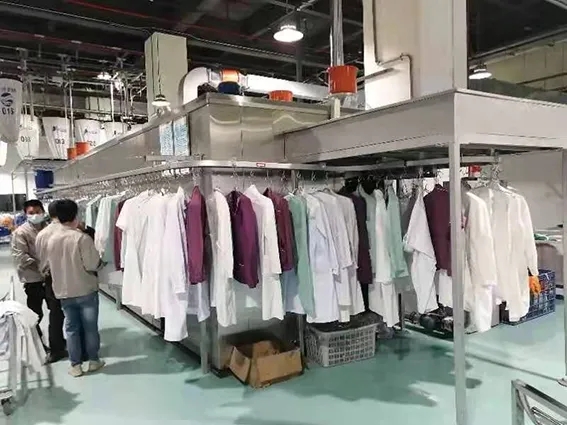 廣州杏林公司負(fù)責(zé)車間的經(jīng)理朱俊方熱情接待了華威公司銷售總監(jiān)趙建偉,趙建偉對設(shè)備進(jìn)行了認(rèn)真檢查,查看了設(shè)備整體運行情況,特別關(guān)注了設(shè)備烘干衣物后的除皺效果。